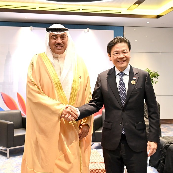 كونا – التقى ممثل حضرة صاحب السمو أمير البلاد الشيخ مشعل الأحمد الجابر الصباح حفظه الله ورعاه سمو ولي العهد الشيخ صباح خالد الحمد الصباح حفظه الله معالي رئيس الوزراء ووزير المالية في جمهورية سنغافورة الصديقة لورنس وونج على هامش القمتين الثانية لدول الآسيان ودول مجلس التعاون لدول الخليج العربية ودول الآسيان ودول مجلس التعاون لدول الخليج العربية وجمهورية الصين الشعبية.