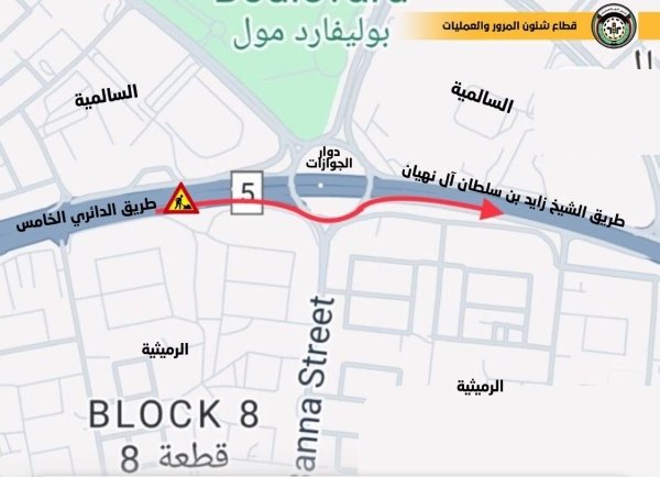 أعلنت الإدارة العامة للمرور عن إغلاق الطريق الخدمي لمدخل دوار الجوازات، للقادم من الجهراء باتجاه دوار البدع، لإجراء أعمال الصيانة للطريق، اعتباراً من اليوم الخميس وحتى فجر الاثنين المقبل.