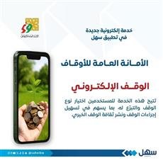 أطلقت الأمانة العامة للأوقاف خدمة إلكترونية جديدة عبر تطبيق سهل وهي الوقف الإلكتروني.