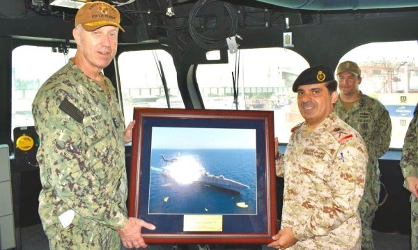 استقبل آمر القوة البحرية بالجيش الكويتي اللواء الركن بحري سيف الهملان قائد القيادة المركزية للقوات البحرية الأميركية الفريق البحري جورج ويكوف بمناسبة زيارته للبلاد حيث كان على متن السفينة البحرية الأميركية (يو إس إس كانبيرا USS CANBERRA).