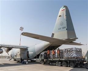 يذكر أن جمعية الهلال الأحمر الكويتي تولت اليوم تجهيز المساعدات الإنسانية المقدمة من مبرة الكنادرة الخيرية بما يضمن تلبية الاحتياجات الغذائية الأساسية لهم كما عملت على تجهيز الطائرات السابقة منها 8 طائرات إلى الأردن و7 إلى مصر لغاية الآن.