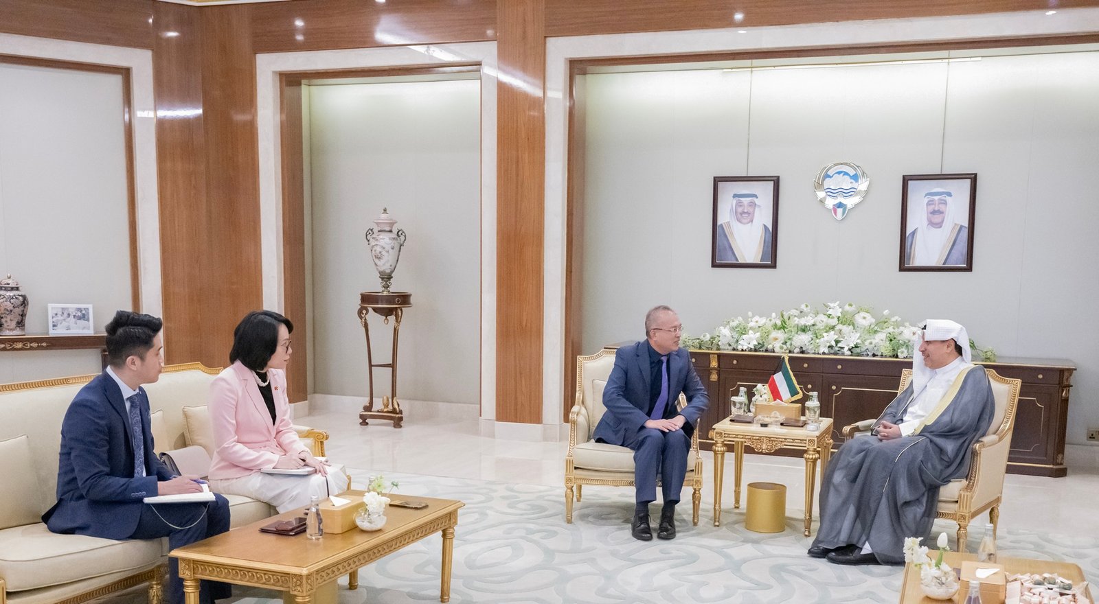 كما استقبل معاليهما سعادة سفير جمهورية فيتنام الاشتراكية الصديقة لدى دولة الكويت دوك ثانغ نجوين الذي قدم التهاني لمعاليهما بمناسبة تعيينهما في مناصبهم الجديدة وجرى خلال اللقاء تبادل الأحاديث الودية واستعراض العلاقات الطيبة التي تجمع البلدين الصديقين وسبل دعمها وتعزيزها على كافة الأصعدة.