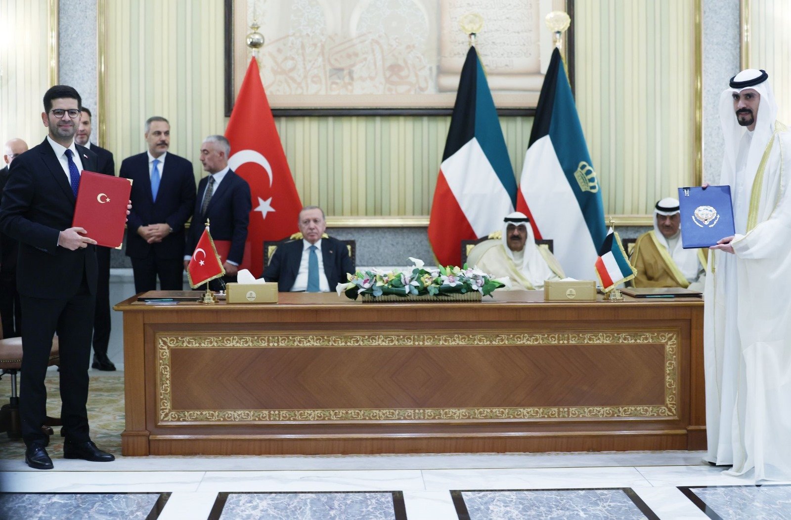 بحضور حضرة صاحب السمو أمير البلاد الشيخ مشعل الأحمد الجابر الصباح حفظه الله رعاه وفخامة الرئيس رجب طيب أردوغان رئيس جمهورية تركيا الصديقة وسمو ولي العهد الشيخ صباح خالد الحمد الصباح حفظه الله وسمو الشيخ أحمد عبدالله الأحمد الصباح رئيس مجلس الوزراء تم بقصر بيان ظهر اليوم التوقيع على اتفاقيات بين دولة الكويت وجمهورية تركيا الصديقة وهي كما يلي:
