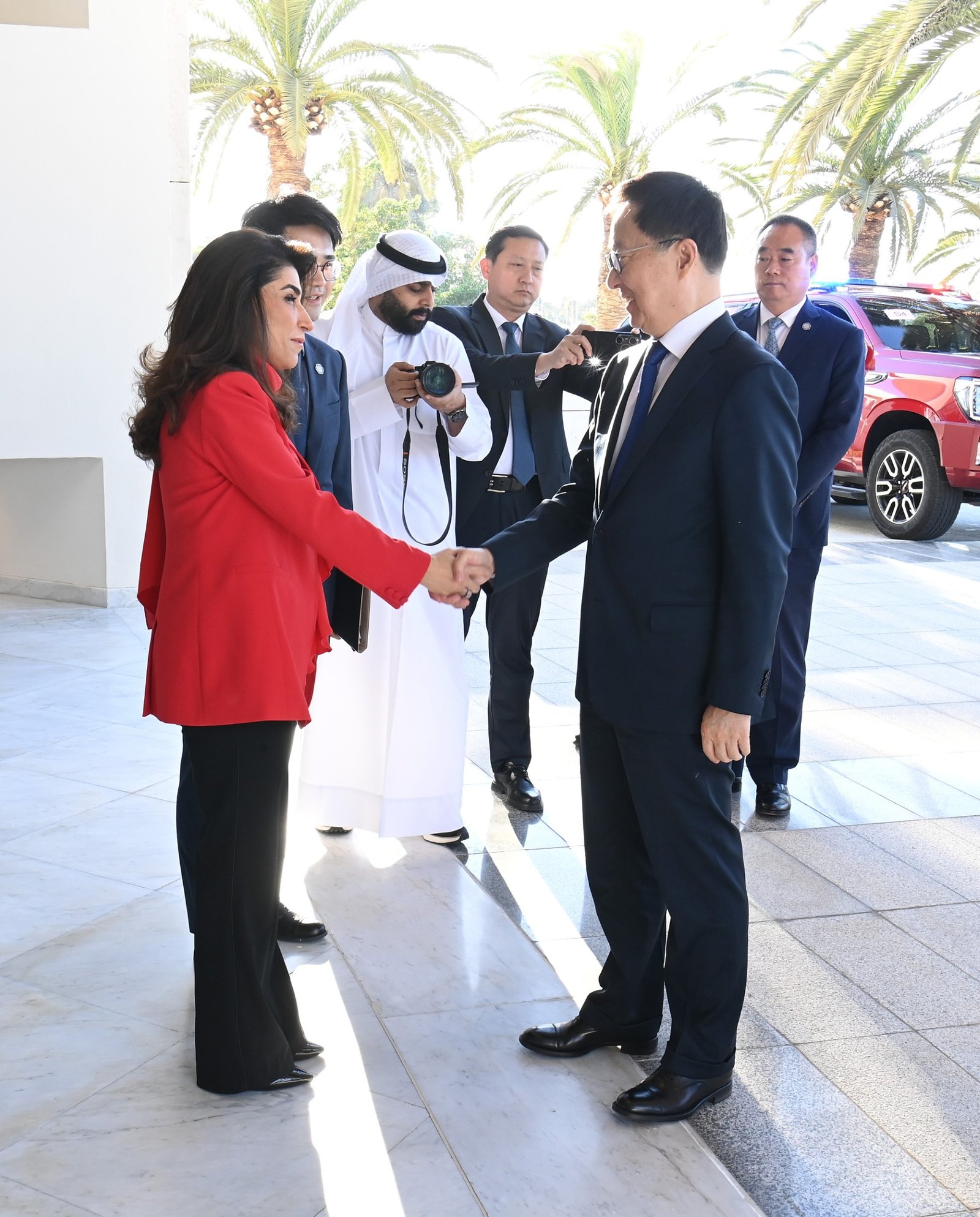 ورافقه خلال الزيارة وزير الاشغال العامة رئيس بعثة الشرف المرافقة الدكتورة نورة محمد المشعان وسفير دولة الكويت لدى جمهورية الصين الشعبية الصديقة جاسم إبراهيم الناجم.