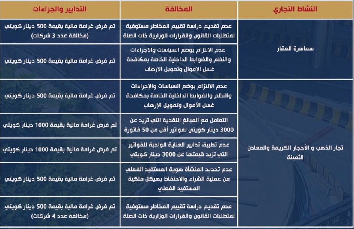 وأشارت إلى أنه تم فرض الجزاءات المالية بحق المخالفين عن أشهر أغسطس وسبتمبر وأكتوبر 2025، وذلك في إطار تعزيز الردع العام ورفع مستوى التزام القطاعين.