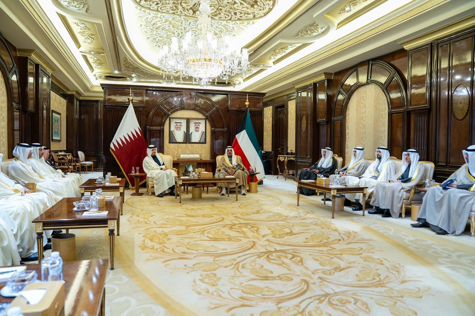 عقد سمو الشيخ أحمد عبدالله الأحمد الصباح رئيس مجلس الوزراء في قصر بيان اليوم جلسة مباحثات رسمية مع الشيخ محمد بن عبدالرحمن بن جاسم آل ثاني رئيس مجلس الوزراء وزير الخارجية في دولة قطر.