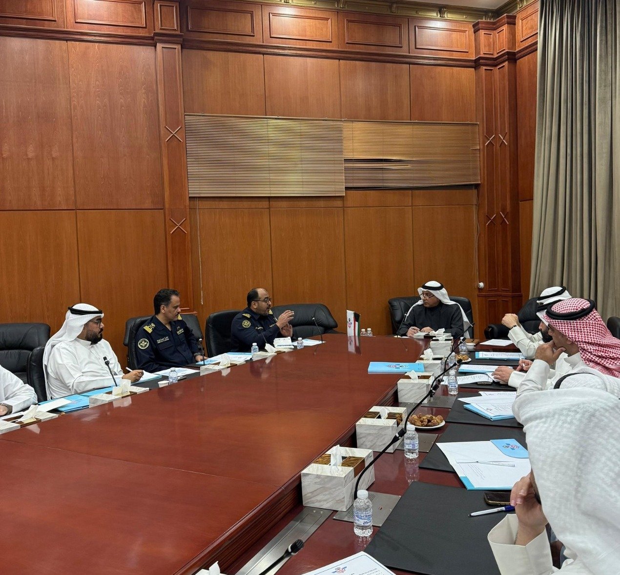 اجتمع رئيس الإدارة العامة للجمارك السيد يوسف خالد النويف ونائب الرئيس لشؤون المنافذ والبحث والتحري الجمركي السيد صالح محمد العمر مع قيادات الجمارك ومدراء الإدارات المختصة، لبحث ومتابعة إجراءات تفعيل نظام النقل الدولي للبضائع (TIR)، وذلك في إطار جهود الإدارة لتعزيز كفاءة العمل الجمركي وتطوير منظومة النقل والتجارة عبر المنافذ الجمركية.