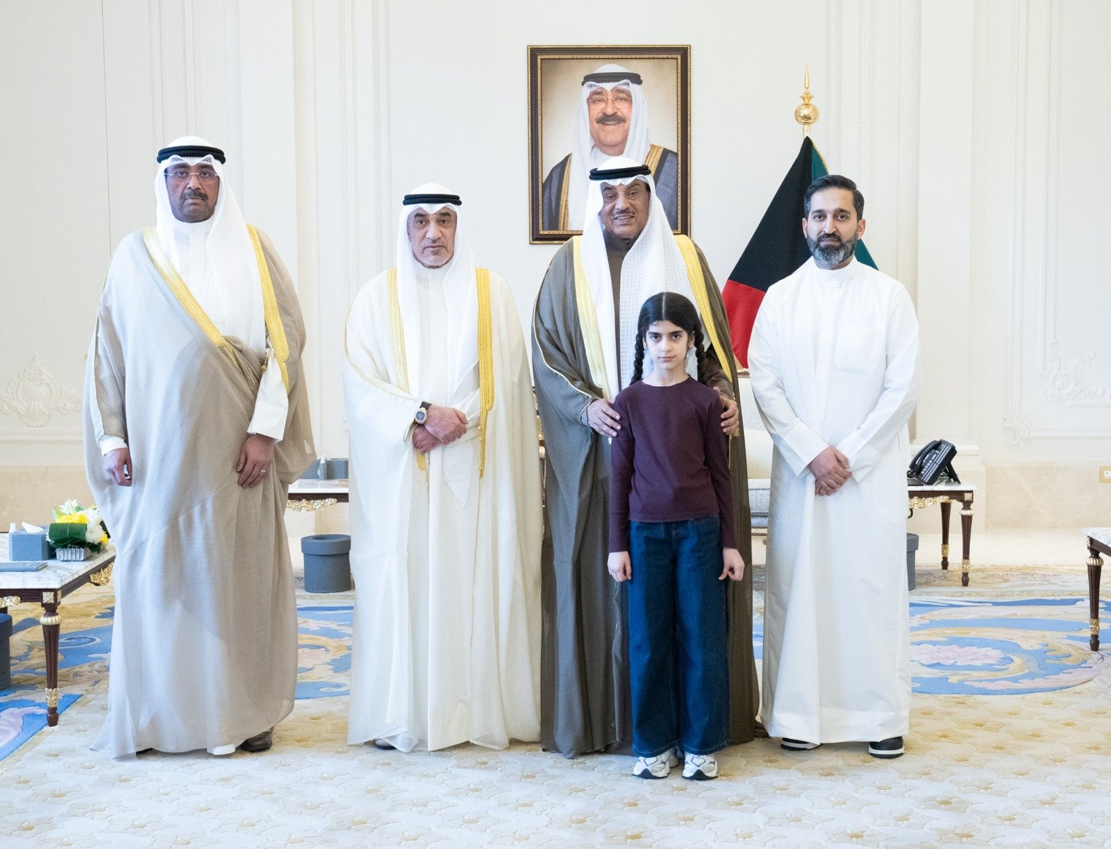 كما استقبل سموه حفظه الله أسرة الشهيدة الطفلة من الجنسية الإيرانية إلنا عبدالله حسين التي استشهدت إثر تعرض منزل أسرتها للقصف خلال الاعتداءات الآثمة من قبل صواريخ العدوان الإيراني الغاشم على المواقع المدنية بدولة الكويت.